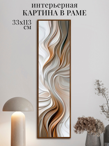 Картина на стену интерьерная в раме "Элегия линий" - узкая вертикальная 33х113 см, Графис