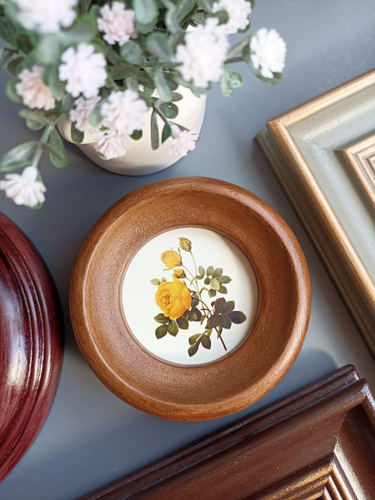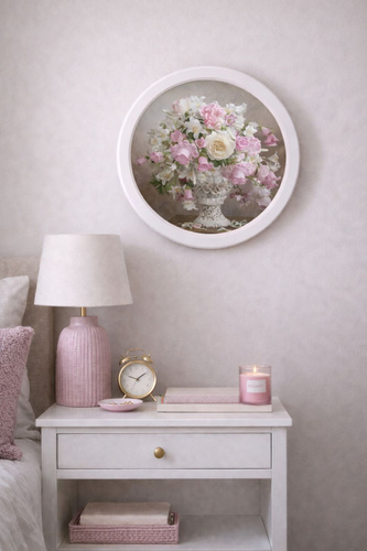 Картина на стену для интерьера на холсте в круглой раме "Винтажный букет" 47 см