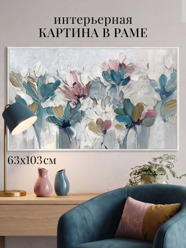 Картина на стену "Воздушные цветы" 63х103 см интерьерная, в раме, большая, горизонтальная