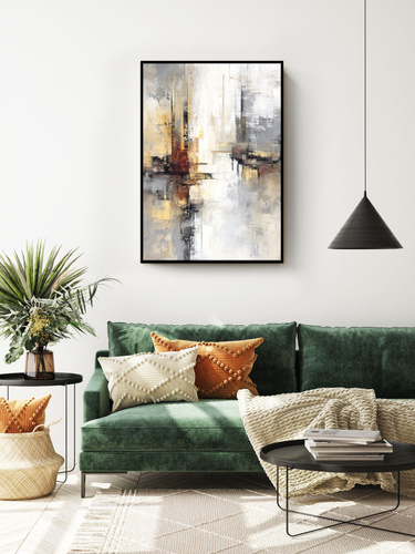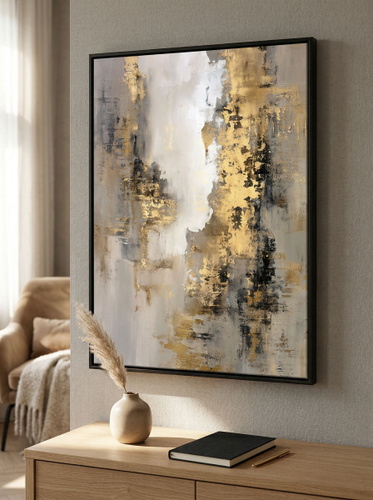 Картина на стену для интерьера в золотой раме "Абстрактные прикосновения 3" - абстракция, 61х81 см, Графис