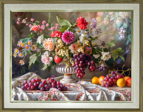Картина на стену для интерьера на холсте в овальной раме 27*37 см "Цветы"