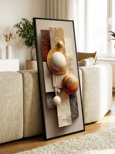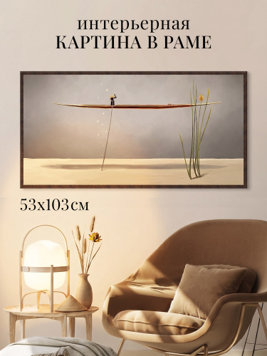 Картина на стену для интерьера большая в раме "Баланс 3", 53х103 см,минимализм, Графис