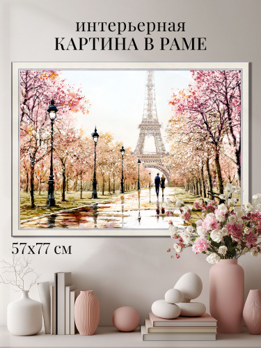 Картина на стену интерьерная в раме "Весенний Париж" - городской пейзаж, 57х77 см, Графис
