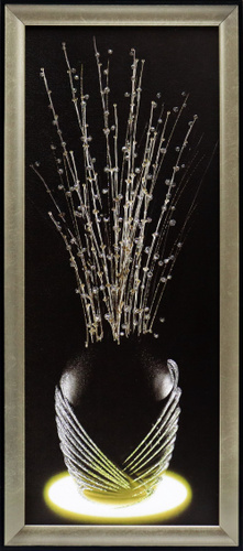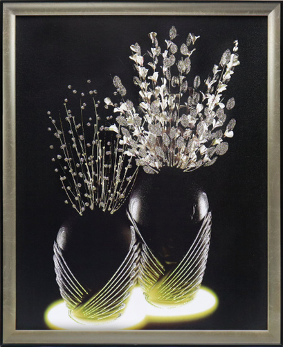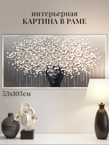 Картина на стену горизонтальная большая в серебряной раме "Белый букет" 53х103 см, Графис