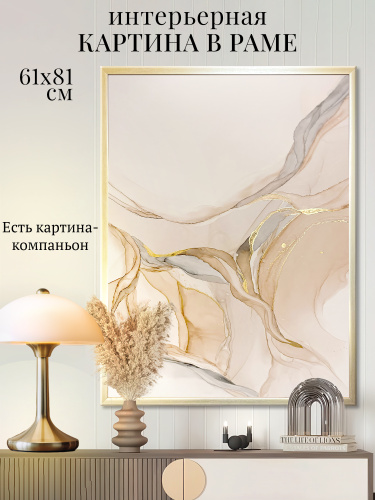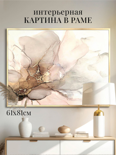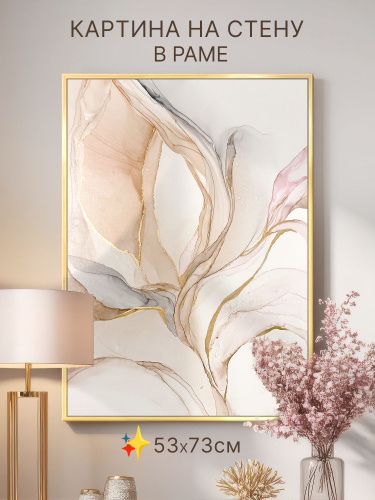 Картина на стену абстракция интерьерная золотой раме "Нежный флюид", 61х81 см, Графис