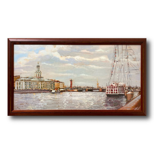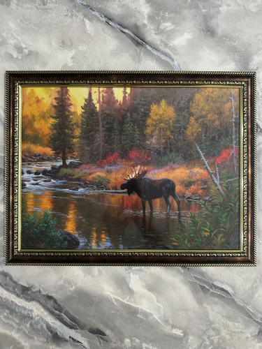 Картина в тёмной раме 45х115см канвас на холсте с подрамником