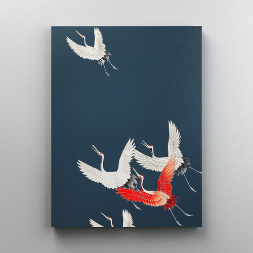 Интерьерная картина на холсте "Винтажный постер - японские журавли" на подрамнике 75x100 см