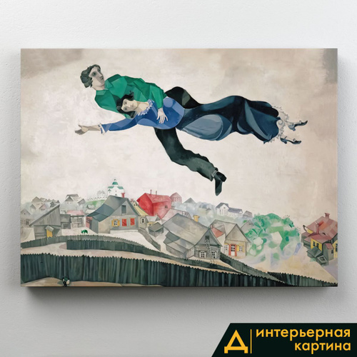 Картина интерьерная на стену, на подрамнике - Над городом, Марк Шагал 75x100 см