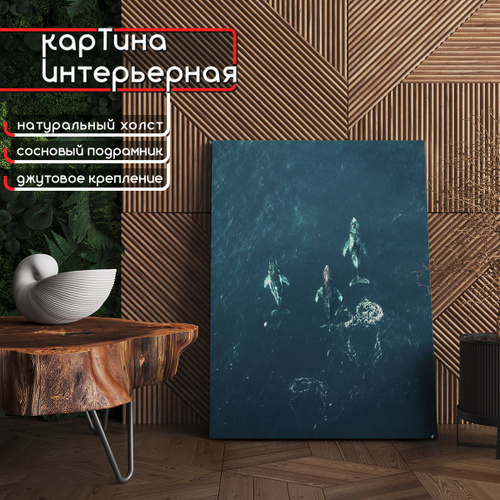 Картина интерьерная на холсте, вертикальная - Стая китов 75x100 см