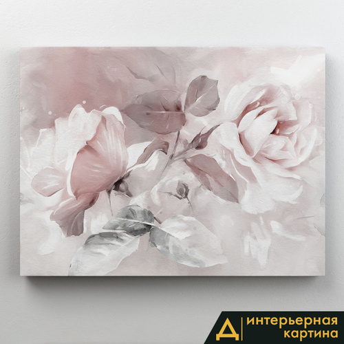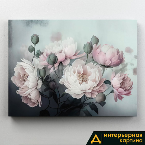 Картина интерьерная на стену, на подрамнике - Цветы пастель, пионы 75x100 см