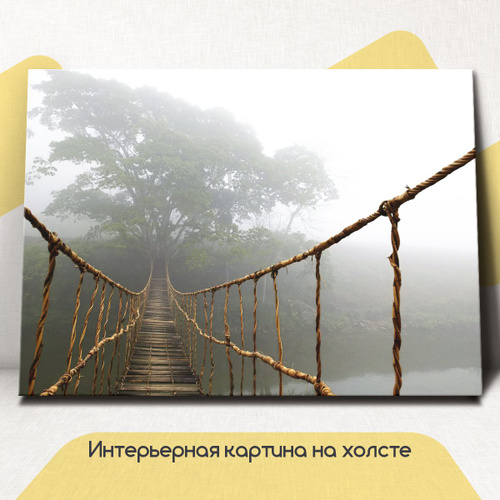 Картина интерьерная на стену, на холсте горизонтальная - Мост в тумане 75x100 см