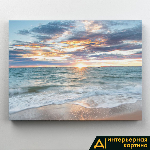 Картина интерьерная на стену, на подрамнике - Рассвет на море 75x100 см