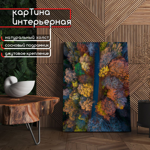 Картина интерьерная на холсте, вертикальная - Осенний лес (вид сверху) 75x100 см