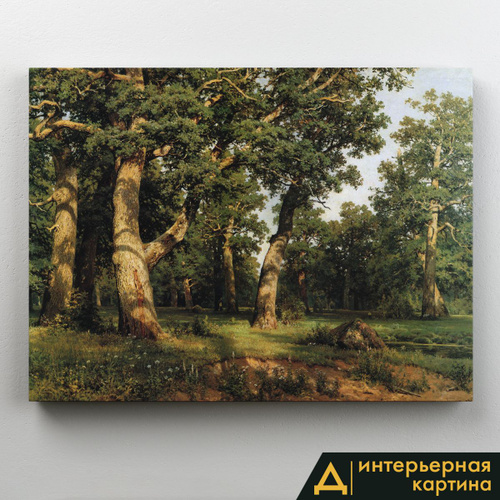 Картина интерьерная на стену, на подрамнике - Дубовая роща, Шишкин И.И. (репродукция) 75x100 см