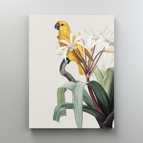 Интерьерная картина на холсте "Винтажный постер - Желтый попугай в цветах" размер 75x100 см