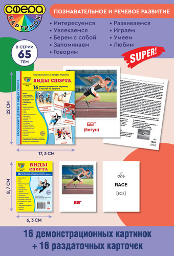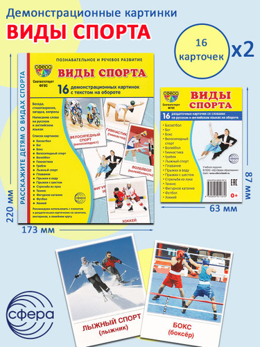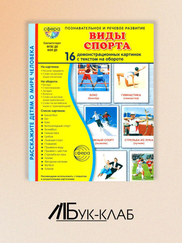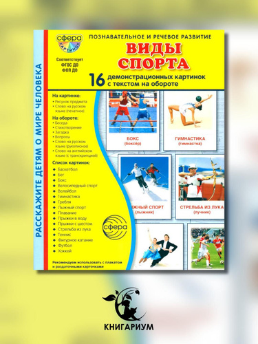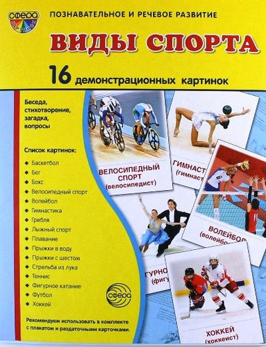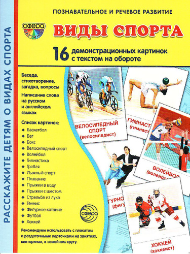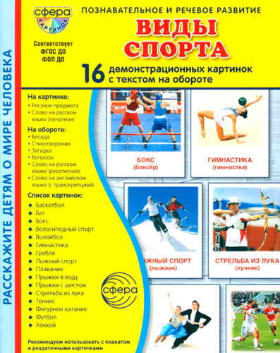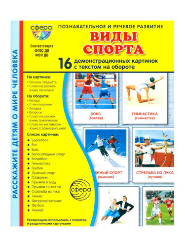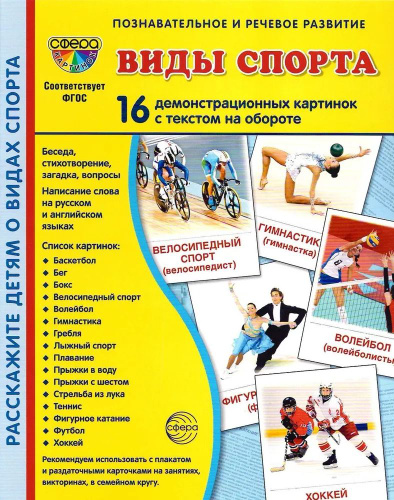Виды спорта. 16 демонстрационных картинок с текстом на обороте. 174 х 220.