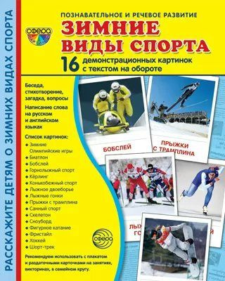 Зимние виды спорта. 16 демонстрационных картинок с текстом