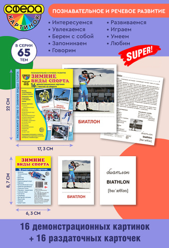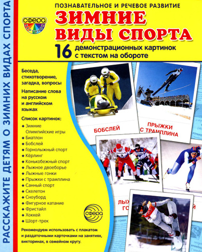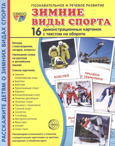 Зимние виды спорта. 16 демонстрационных картинок с текстом на обороте. 174 х 220