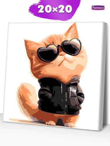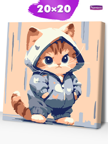 Картина по номерам для детей 20х20 Котёнок крутой Р4206 Развивашки