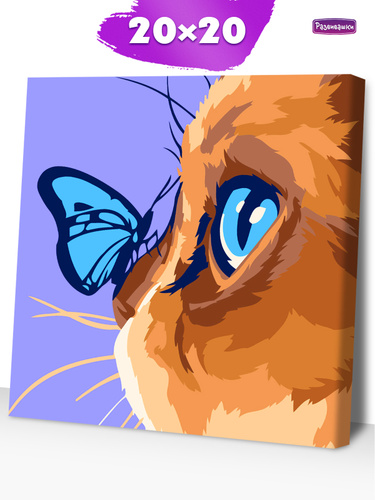 Картина по номерам для детей 20х20 Котик и бабочка Р4140 Развивашки