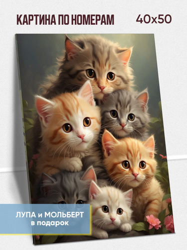 Картина по номерам на Подрамнике на Холсте 40x50 см ,Котики,Животные,Милые котята