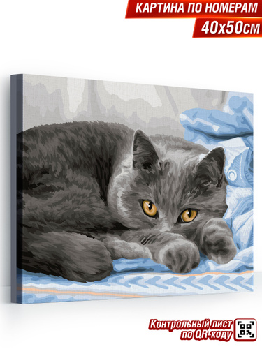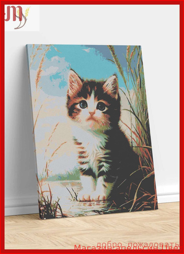 Картина по номерам Hobruk "Котёнок", на холсте на подрамнике 40х50, раскраска по номерам, набор для творчества, животные/ кот