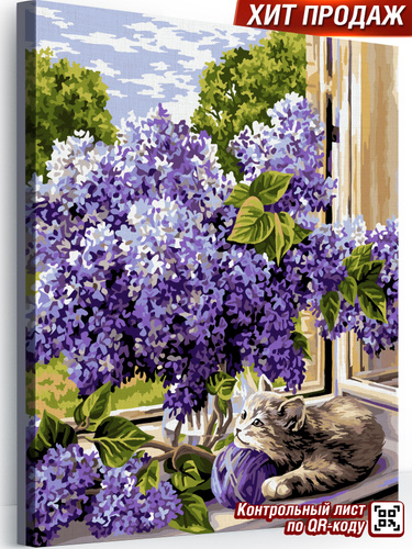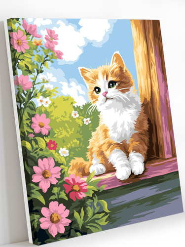 Картина по номерам на холсте с подрамником 40х50 "Котенок на подоконнике"