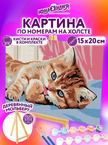 Картина по номерам 15х20 см, Юнландия Котёнок, на холсте, акрил, кисти