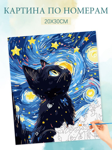 Картина по номерам на холсте с без подрамником 20х30 / "Звездный котенок"