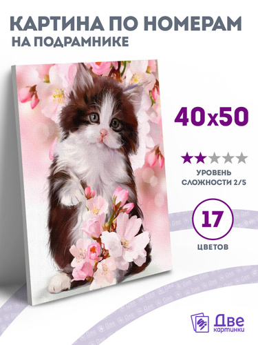 Картина по номерам Hobruk "Котенок", на холсте на подрамнике 40х50, раскраска по номерам, набор для творчества, животные/ кот