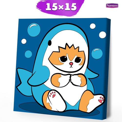 Картина по номерам для детей 15х15 Котёнок-акулёнок Р3370 Развивашки