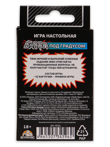 Настольная игра для взрослых Miland "Баттл под градусом" (32 карточки) для компании/ подарок