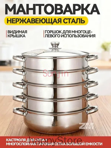Мантоварка "7YM1N6BNC9", Нержавеющая сталь, 2 яруса, 5 л
