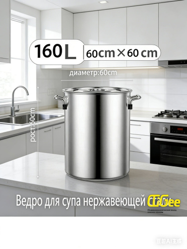 Кастрюля, Нержавеющая сталь, 160 л, 1 шт