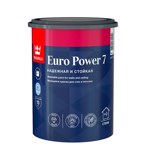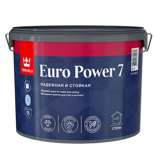 TIKKURILA EURO POWER 7 / ТИККУРИЛА ЕВРО ПАУЭР 7, 9л,БЕЛАЯ(БАЗА А) КРАСКА МАТОВАЯ МОЮЩАЯСЯ