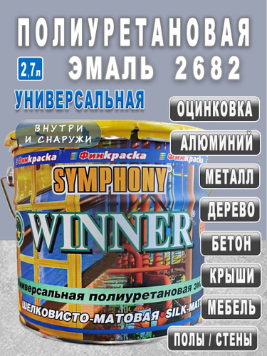 Эмаль Полиуретановая Универсальная 2,7л Цвет 2682 Шелковисто-матовая Symphony Winner для металла оцинковки алюминия бетона дерева