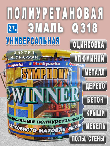 Эмаль Полиуретановая Универсальная 2,7л Цвет Q318 Шелковисто-матовая Symphony Winner для металла оцинковки алюминия бетона дерева
