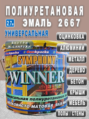 Эмаль Полиуретановая Универсальная 2,7л Цвет 2667 Шелковисто-матовая Symphony Winner для металла оцинковки алюминия бетона дерева