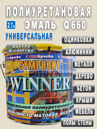 Эмаль Полиуретановая Универсальная 2,7л Цвет Q660 Шелковисто-матовая Symphony Winner для металла оцинковки алюминия бетона дерева