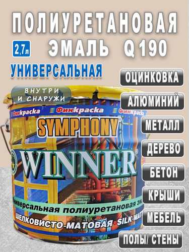 Эмаль Полиуретановая Универсальная 2,7л Цвет Q190 Шелковисто-матовая Symphony Winner для металла оцинковки алюминия бетона дерева