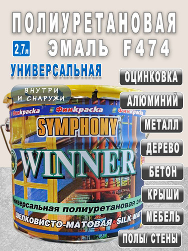 Эмаль Полиуретановая Универсальная 2,7л Цвет F474 Шелковисто-матовая Symphony Winner для металла оцинковки алюминия бетона дерева