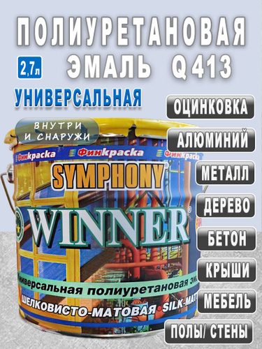 Эмаль Полиуретановая Универсальная 2,7л Цвет Q413 Шелковисто-матовая Symphony Winner для металла оцинковки алюминия бетона дерева
