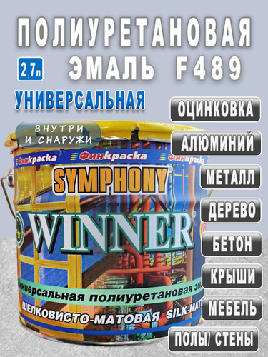Эмаль Полиуретановая Универсальная 2,7л Цвет F489 Шелковисто-матовая Symphony Winner для металла оцинковки алюминия бетона дерева