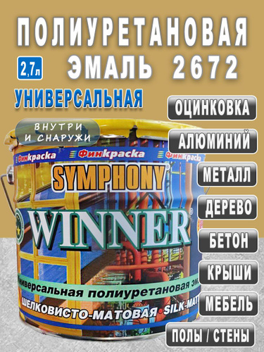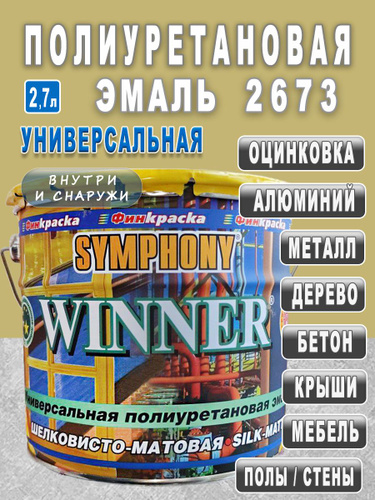 Эмаль Полиуретановая Универсальная 2,7л Цвет 2673 Шелковисто-матовая Symphony Winner для металла оцинковки алюминия бетона дерева
