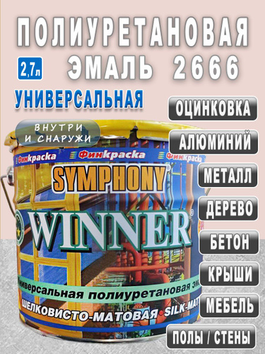 Эмаль Полиуретановая Универсальная 2,7л Цвет 2666 Шелковисто-матовая Symphony Winner для металла оцинковки алюминия бетона дерева