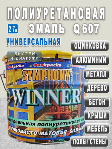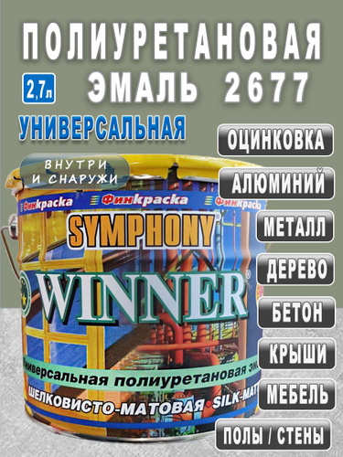Эмаль Полиуретановая Универсальная 2,7л Цвет 2677 Шелковисто-матовая Symphony Winner для металла оцинковки алюминия бетона дерева