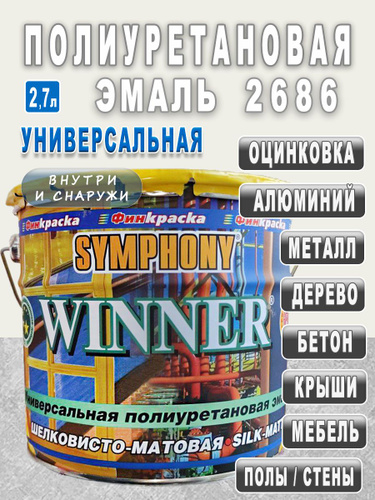 Эмаль Полиуретановая Универсальная 2,7л Цвет 2686 Шелковисто-матовая Symphony Winner для металла оцинковки алюминия бетона дерева