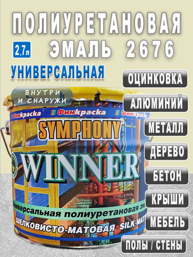 Эмаль Полиуретановая Универсальная 2,7л Цвет 2676 Шелковисто-матовая Symphony Winner для металла оцинковки алюминия бетона дерева