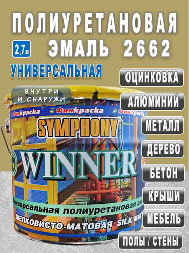 Эмаль Полиуретановая Универсальная 2,7л Цвет 2662 Шелковисто-матовая Symphony Winner для металла оцинковки алюминия бетона дерева