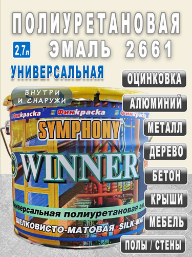 Эмаль Полиуретановая Универсальная 2,7л Цвет 2661 Шелковисто-матовая Symphony Winner для металла оцинковки алюминия бетона дерева